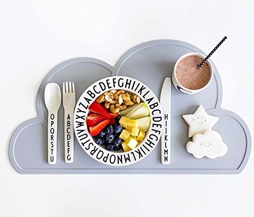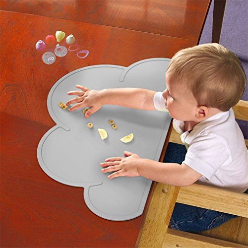 【モノトーンラボ】ランチョンマット 食事マット ベビー 子供用 シリコン 雲柄 クラウド(グレー
