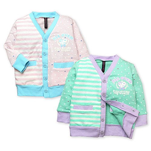 【女児ベビー】【カーディガン】“Sugary Stay”ボーダー×ドット柄 切替配色カーディガン (1ピンク/95cm)