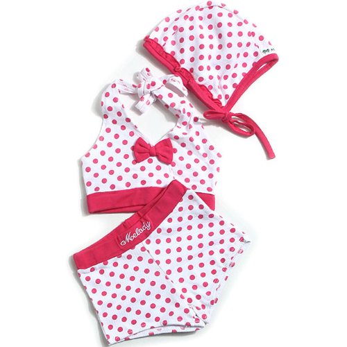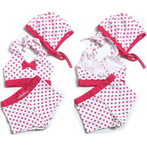【韓国子供服】【100cm】【110cm】ドット柄&リボン セパレーツ 水着(ピンク) 90cm/100cm/110cm(110(7))