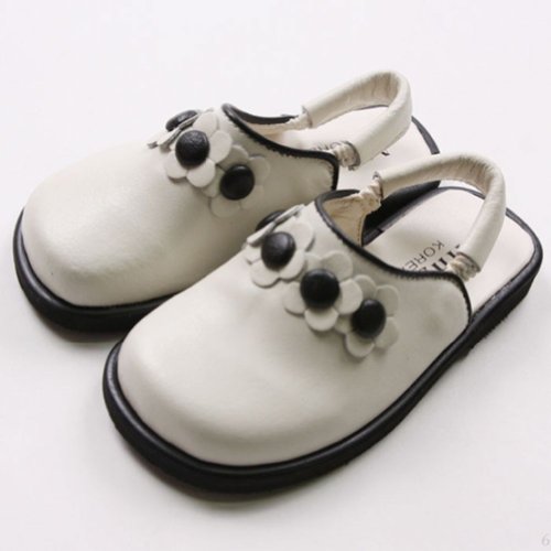 【韓国子供服】花付 合皮サボ サンダル スリッポン(ホワイト)/14cm/15cm/16cm/17cm (14cm)