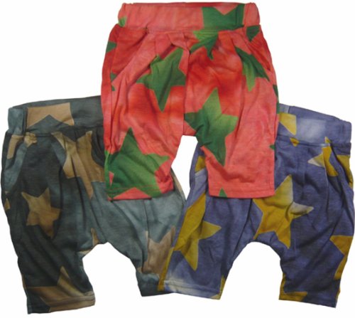 【韓国子供服】超薄手 BIG スター柄 ハーフパンツ サルエル風(ネイビー)/90cm 100cm 110cm 120cm 130cm 140cm (100(5))