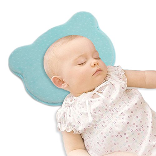 【KooBee】 新生児 ベビー枕 ベビーピロー 赤ちゃん用枕 かわいい 頭の形 キレイ 絶壁防止 スヤスヤ眠れる ベビー布団 寝具 小熊の形 出産祝い (ブルー)