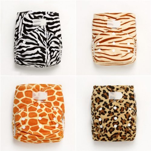 限定【目玉商品テープ式アニマル4枚セット】 ワンサイズ布おむつカバー
