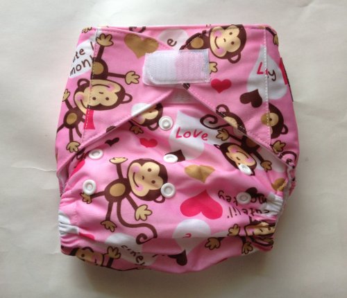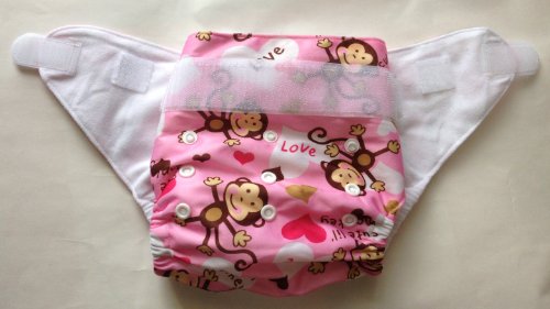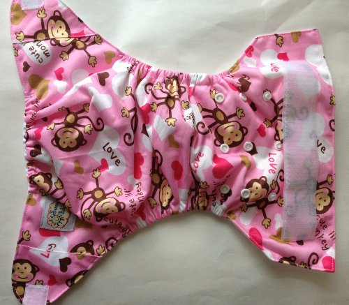 SUNNY BABY テープ式薄型 動物園シリーズ ピンクサル ワンサイズ布おむつカバー