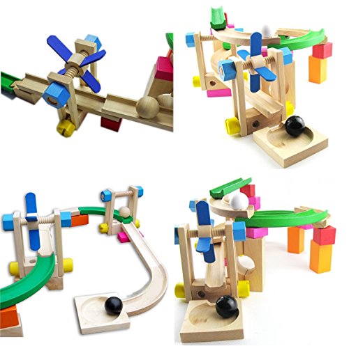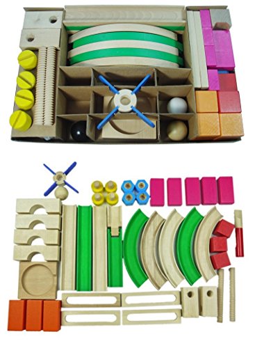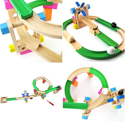 - ピタゴラスイッチの様な遊びができるおもちゃ。天然木材ながらお手頃な価格。色々なコースが作れて、積木として遊ぶことも出来ます。