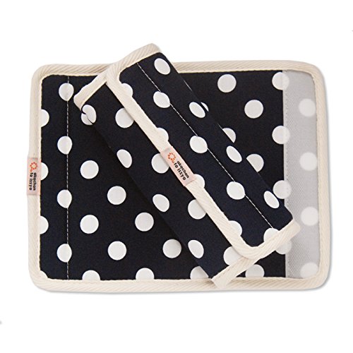 【商品詳細】 表地:綿100% 中:スポンジ バイアステープ:綿100% サイズ:長さ23センチ×幅17センチ マジックテープを留めた際の幅は約9センチ 1セット 2枚入り 個別袋入り