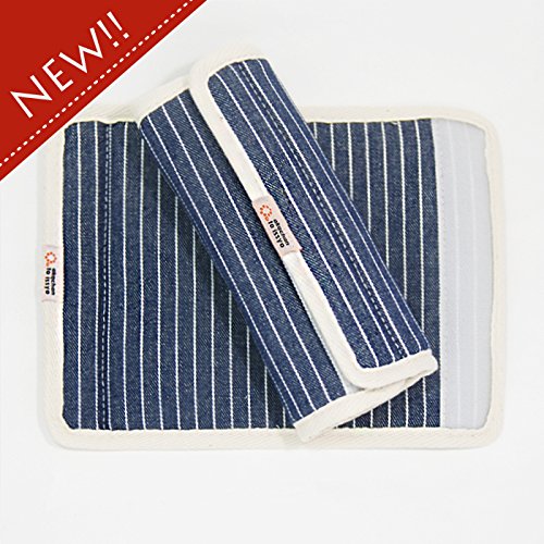 【商品詳細】 表地:綿100% 中:スポンジ バイアステープ:綿100% サイズ:長さ23センチ×幅17センチ マジックテープを留めた際の幅は約9センチ 1セット 2枚入り 個別袋入り 日本製