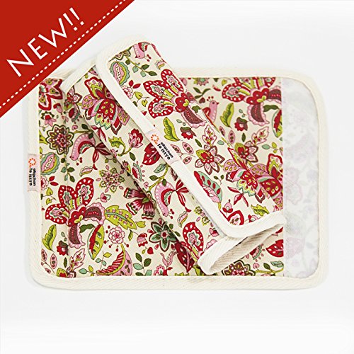 【商品詳細】 表地:綿100% 中:スポンジ バイアステープ:綿100% サイズ:長さ23センチ×幅17センチ マジックテープを留めた際の幅は約9センチ 1セット 2枚入り 個別袋入り 日本製