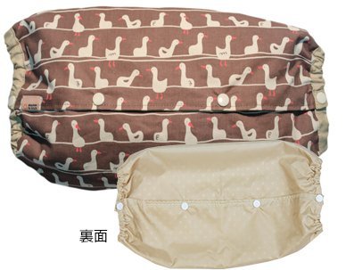 - 雨の日や汚れそうな場所ではリバーシブルで! 裏地は防水加工した布を使いました。