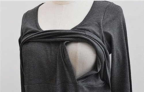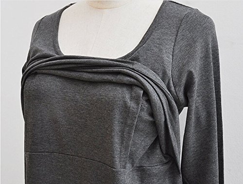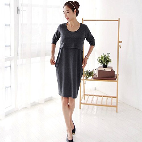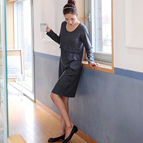 (うちこづ) マタニティドレス 妊婦服 妊娠中 出産準備 授乳口付き 産後ワンピ 妊娠中 ワンピース ロンT 長袖 灰色 グレー 結婚式 ✩オリジナルタオルハンカチセット デザインおまかせ✩