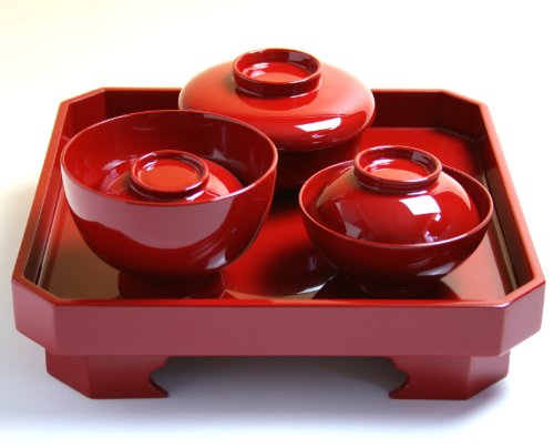 - 仕様:お膳26cm×26cm×6cm(高さ)、φ10.5cm×7.0cm(高さ)、汁椀φ9.5cm×6.0cm(高さ)、平椀φ11.2cm×6.5cm(高さ)