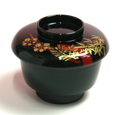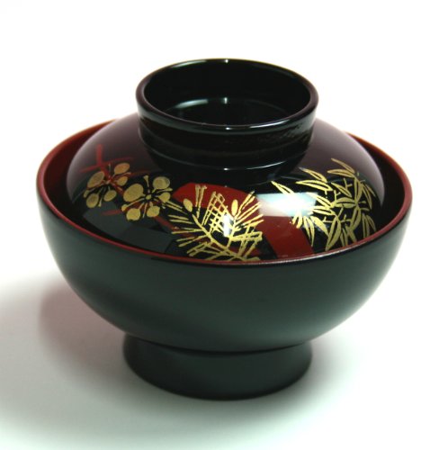 - 日本製 ユリア樹脂 カシュー塗 お食い初めにふさわしくおめでたい松竹梅の図柄です