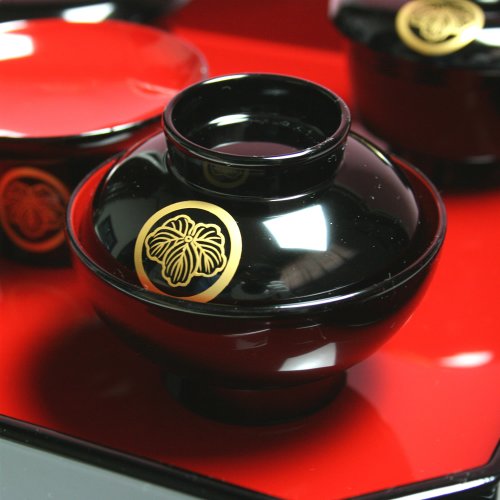 - 家紋は合計6ヵ所に入ります 場所:お膳 高つきの胴 飯椀、汁椀、つぼ椀、平椀の各フタ