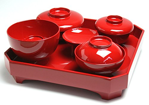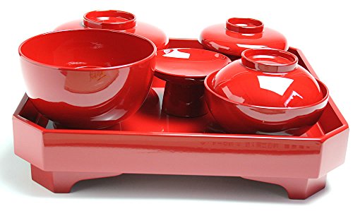 - 木粉樹脂形成加工品に漆を塗って仕上げています。 お膳:26.5cm×26.5cm×5.5cm 飯椀:φ8.5cm×6㎝(高さ)汁椀:8.5cm×7㎝(高さ)高つき:φ8.0cm×4.5cm(高さ)平椀:φ10.0cm×6.0cm(高さ)つぼ椀:φ8.5cm×7.0cm(高さ)φ8.5cm×7.1cm(高さ)