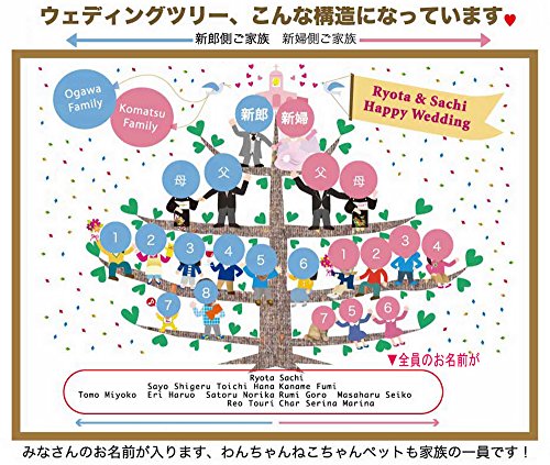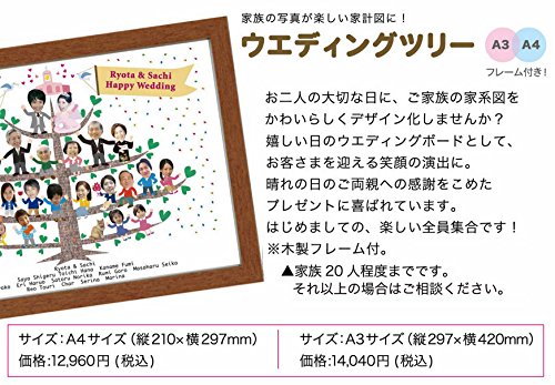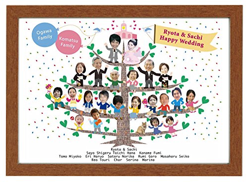 ご両親への感謝をこめて、ご両家のますますの繁栄を願って、結婚式でご両親に贈りたいウェディングツリー。 ウエルカムボードとしても素敵! お二人のスタートを祝う大切な時の記念に、ウェディングツリーにみんなの笑顔をが集まります。 ※木製フレーム付。 ウエディングツリーA4サイズ ●サイズ:A4サイズ(縦210×横297mm) ご家族は20人程度です。それ以上の場合はご相談ください。 ファミリーツリーはおあつらえ本舗のオリジナル商品です。類似品にご注意ください。