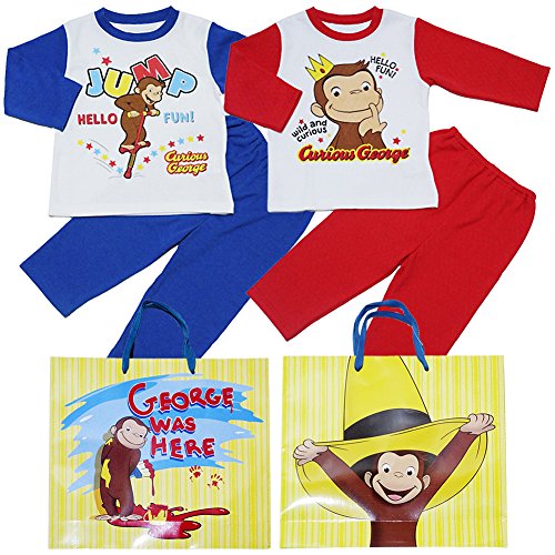 2018年 春物 おさるのジョージ スムスパジャマ ニットキルトパジャマ 2枚組セット Curious George 福袋 ブルー◇100cm