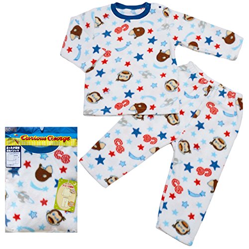 2017年 秋冬 おさるのジョージ フリース 総柄 長袖パジャマ Curious George ブルー◇80cm