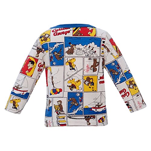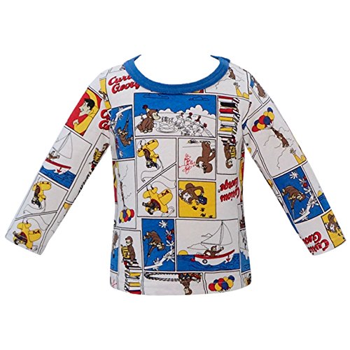 2017年 秋冬 おさるのジョージ 天竺 アメコミ風総柄 長袖Tシャツ Curious George 首周ブルー◇80cm