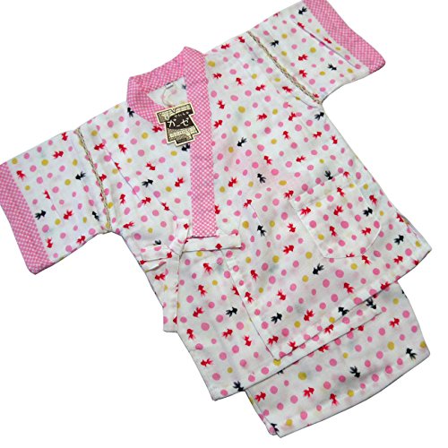 子供用甚平 二重ガーゼ生地 90cm 水玉 金魚 ピンク