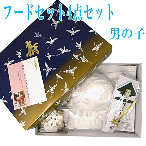 お宮参り4点セット フードセット 男の子 白 日本製 箱入り