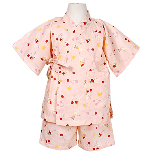 ウサギとさくらんぼ柄がかわいい甚平セット。