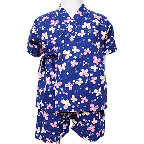 和柄女児ベビー用甚平スーツ2点セット0084 90cm ネイビー