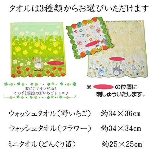 - トトロのおもちゃ×1個、 綿100% ウォッシュタオル(フラワー)約34×34cm×1枚 or 綿100% ミニタオル(どんぐり笛)約25cm×25cm×1枚 or ウォッシュタオル 約34×34cm×1枚(限定デザイン野いちご)、おむつ パンパースMサイズ×8枚