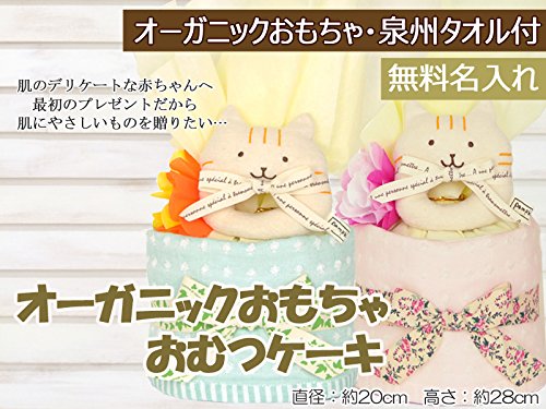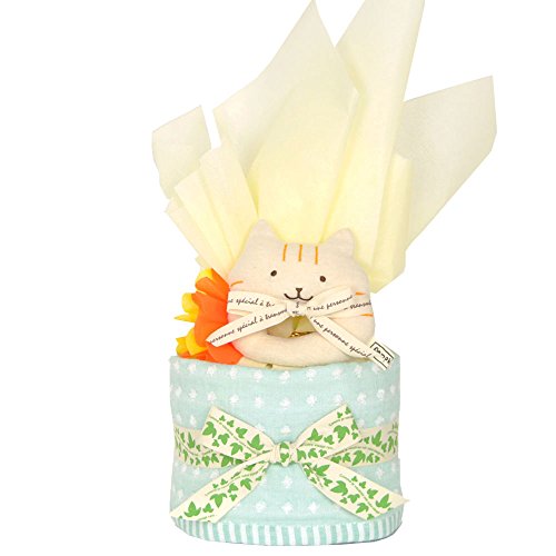 おむつケーキ すまいる にゃんこ (1段) 出産祝い ギフト (オムツ パンパース M) 綿100% 泉州タオル プチギフト 名入れ刺繍 (グリーン)