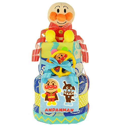 すまいる おむつケーキ < アンパンマン > 2段 出産祝い ( オムツ パンパース M ) ( タンバリン ブルー )