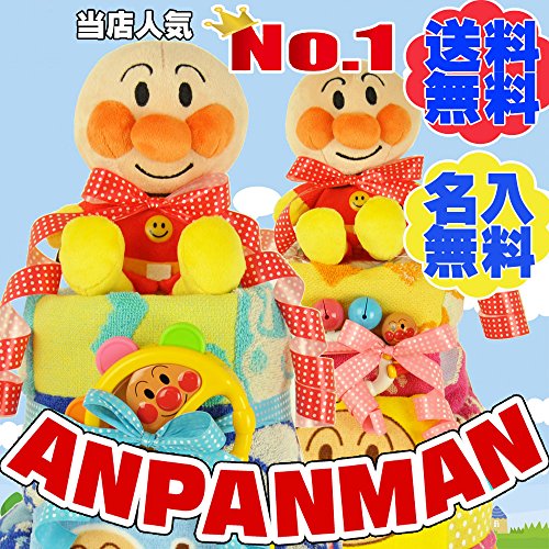 - <商品詳細>【アンパンマンのぬいぐるみ】×1個、【フレンドベル】×1個、【綿100%フェイスタオル(34×75cm)】×1枚、【アンパンマン巾着】×1枚、【おむつ】パンパースMサイズ×18枚