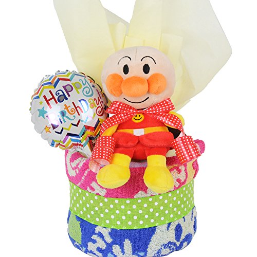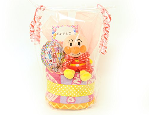 - <商品詳細>【アンパンマンのぬいぐるみ】×1個、【綿100%ウォッシュタオル(35×35cm)】×1枚、【おむつ】パンパースMサイズ テープタイム×8枚
