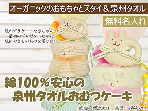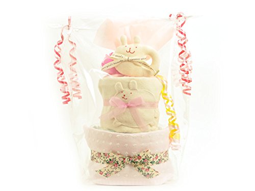 すまいる おむつケーキ < さくら > 2段 出産祝い ( オムツ パンパース M ) オーガニックコットン タオル ( うさぎ )