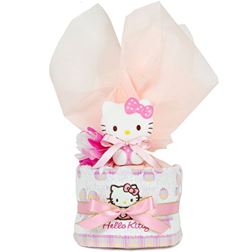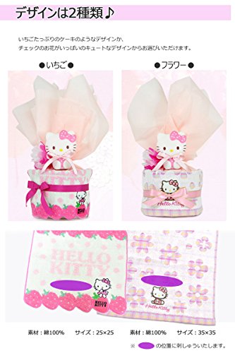 - <商品詳細>【キティ・おもちゃ】×1個、【綿100%いちご柄タオル】or【綿100%フラワー柄タオル】×1枚、【おむつ】パンパースMサイズ×8枚