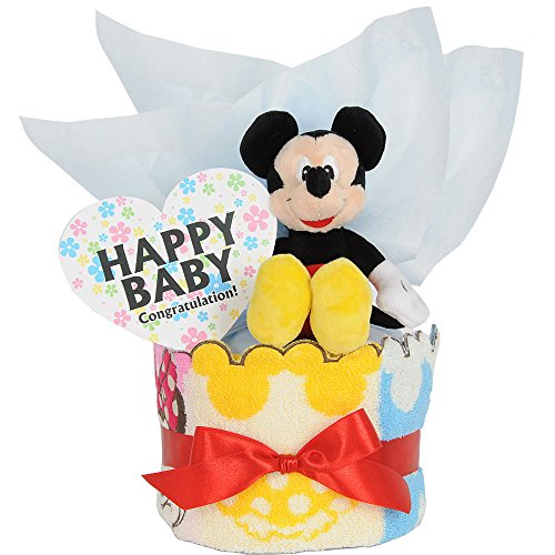 すまいる おむつケーキ < ディズニー ミッキー ぬいぐるみ > 1段 出産祝い ( オムツ パンパース M ) タオル