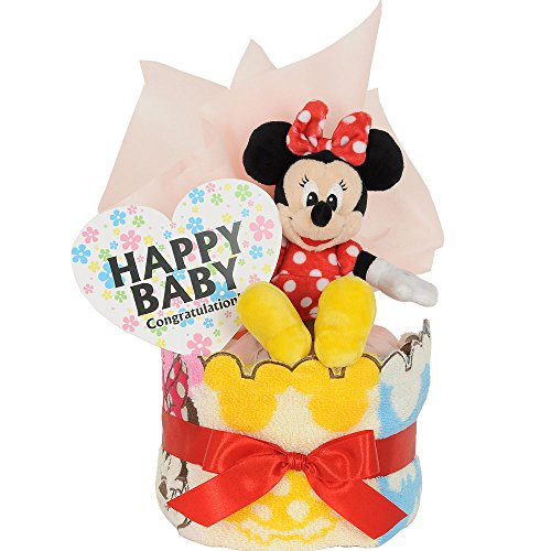 すまいる おむつケーキ < ディズニー ミニー ぬいぐるみ > 1段 出産祝い ( オムツ パンパース M ) タオル