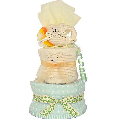 おむつケーキ すまいる < わかくさ > 2段 出産祝い ギフト ( オムツ パンパース M ) 綿100% 泉州タオル プチギフト ( わんこ )