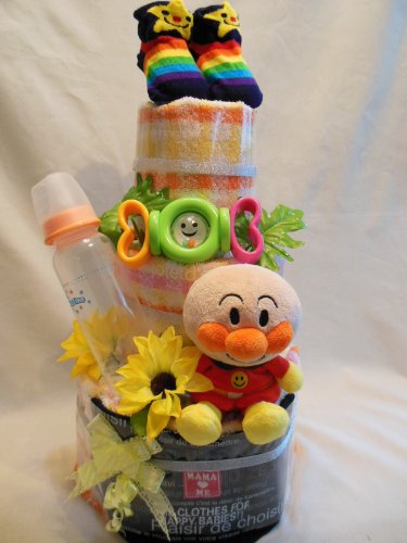 大人気アンパンマンの豪華3段おむつケーキ!おむつもたっぷりでハンドタオル、哺乳瓶、おもちゃやベビーソックスなどアイテムも充実。喜ばれる事間違いなしですね!