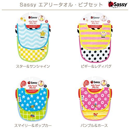 - ■Sassy ビブセット(【バイクが「ブルー」の場合『スター&サンシャイン or スマイリー&ポップカー』どの柄になるかはお楽しみ】【バイクが「ピンク」の場合『ピギー&レディバグ or バンブル&ホース』どの柄になるかはお楽しみ】) ※期間限定!ビブ2枚に今だけ刺繍無料(希望の場合は『刺繍 ○○』とギフトメッセージ欄に「ひらがな・カタカナ・ローマ字のいずれか10文字以内」で記載ください)