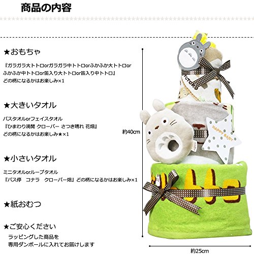 となりのトトロ おむつケーキ 出産祝い 名入れ刺繍 3段 オムツケーキ 男の子 女の子 スタジオジブリ (ムーニーパンツタイプLサイズ(男の子用))