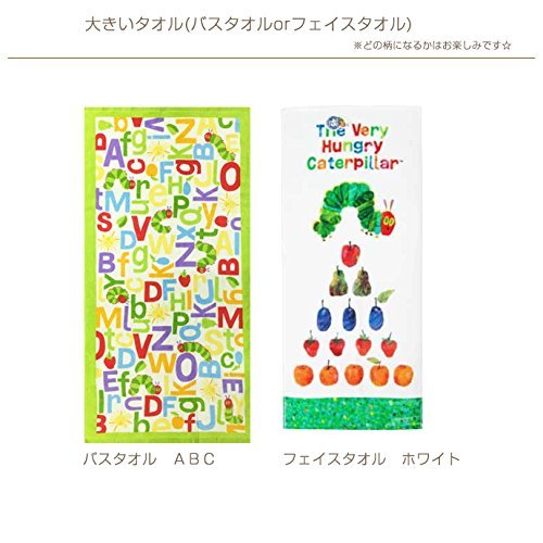 - ■はらぺこあおむし 大きいタオル(バスタオルorフェイスタオル『ABC ホワイト』どの柄になるかはお楽しみ)★×1 ☆期間限定!今だけ刺繍無料(希望の場合は『刺繍 ○○』とギフトメッセージ欄に「ひらがな・カタカナ・ローマ字のいずれか10文字以内」で記載ください)