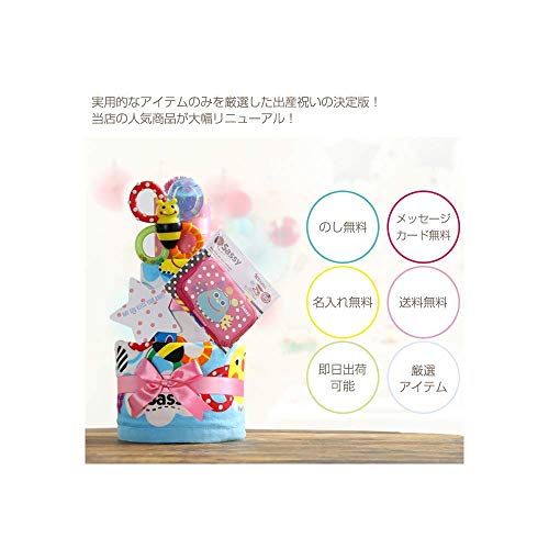 Sassy サッシー 出産祝い 身長計付き バスタオル 3段 おむつケーキ 名入れ刺繍 歯固め ビタット Bitatto メリーズテープタイプMサイズ 女の子用(ピンク系)