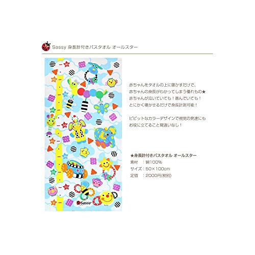 - ■Sassy 身長計付きバスタオル「オールスター」×1 ☆期間限定!今だけ刺繍無料(希望の場合は『刺繍 ○○』とギフトメッセージ欄に「ひらがな・カタカナ・ローマ字のいずれか10文字以内」で記載ください)
