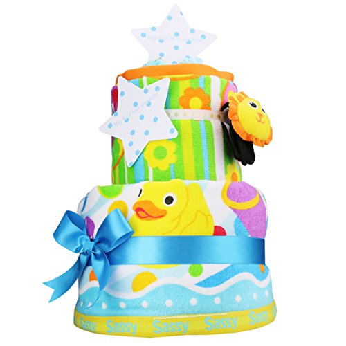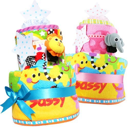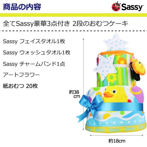Sassy サッシー 出産祝い 豪華2段 おむつケーキ ブルー 男の子 パンパース テープタイプ S 手作り