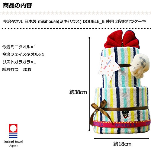 DOUBLE_B(ダブルビー) mikihouse(ミキハウス) 使用 出産祝い 日本製 2段 おむつケーキ 今治タオル パンパースS オーガニック ガラガラ imabari towel 男の子でも女の子でも