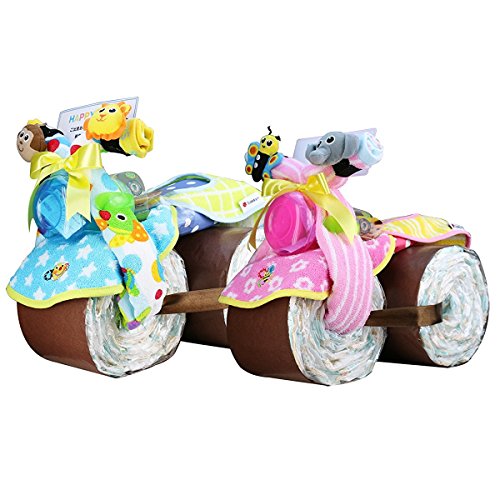 おむつバイク 出産祝い Sassy サッシー オムツバイク ビブ ラトル タオル マグ おむつケーキ 手作り 豪華6点付 (ムーニーテープタイプSサイズ, ブルー)