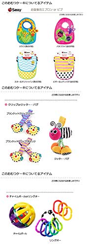 - ■Sassy キャタピラー・キャリー(ベビーカー用おもちゃ)×1 ■Sassy&Nubyアイテム『バグズチャイムorバスタイムフレンズorソフトネイル・クリッパーズorペンギン・ボートorペリカン・ボートorヒートセンサースプーン』どの柄になるかはお楽しみ×1 ■Sassy おもちゃ『ブランケットクリップブルーorブランケットクリップオレンジorジッター・バグ』どの柄になるかはお楽しみ×1 ■Sassy エプロン(ビブ)『★男の子向け(ジラフ or スター&サンシャイン)どの柄になるかはお楽しみ×1』『★女の子向け(バタフライ or ピギー&レディバグ)どの柄になるかはお楽しみ×1』