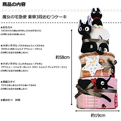 紙おむつ高品質No1のパンパースと、スタジオジブリの名作”魔女の宅急便”とのコラボレーションおむつケーキ。 ※当店のおむつケーキ職人が1つ1つ丹精込めてお作りしております。出産祝いだけでなくバースデープレゼントや100日御祝い、内祝い、また、授かり婚・幸せカップルの方へのサプライズプレゼントにも是非★ ※ご留意ください※ アマゾンの仕様上、購入時にギフト設定を行わなかった場合は金額等が判明する明細が同封されてしまいます。直接お届けを行なう際にはご注意いただけますようお願い申しあげます。