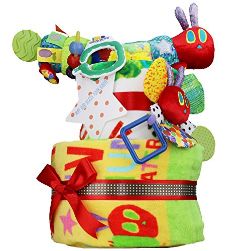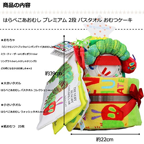 はらぺこあおむし 出産祝い プレミアム 2段 おむつケーキ バスタオル 男女兼用 ERIC CARLE エリックカール (パンパース テープタイプ S)