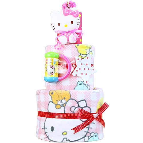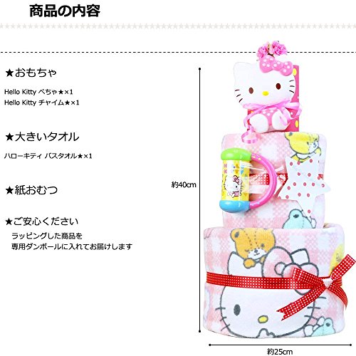サンリオ ハローキティ おむつケーキ 女の子 キティちゃん 名入れ刺繍 3段 出産祝い オムツケーキ バスタオル Hello Kitty (ムーニーパンツタイプMサイズ)