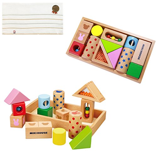 mikihouse(ミキハウス) 音が鳴る積み木 ラトルブロック 46-1239-786 出産祝い 高級今治タオル付き imabari towel